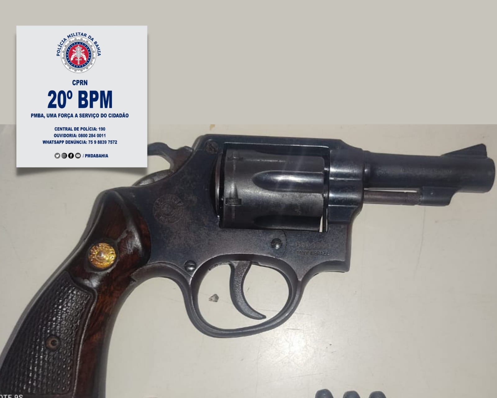 Foi realizado a abordagem ao mesmo e encontraram em sua posse um revólver Taurus calibre .38. Foi conduzido à Delegacia de Polícia Civil com o apoio da Viatura 8.2003 para adoção das medidas legais cabíveis. Na oportunidade, foi feita apreensão do seguinte material: