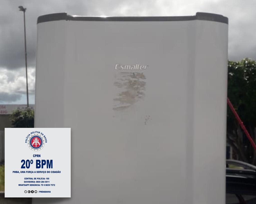 A Polícia Militar da Bahia (PMBA), através do 20º Batalhão de Polícia Militar (BPM/ Paulo Afonso realizou a prisão de suspeito por receptação em Paulo Afonso Bahia, neste sábado 23 de julho de 2022, por volta das 09h45min, a guarnição foi solicitada pelo CICIOM em uma situação de uma receptação de uma geladeira na cor branca da marca Esmaltec, onde teria sido furtada no domingo, dia 17/07/22 da residência da vítima no Distrito de Quixaba na cidade de Glõria Bahia.