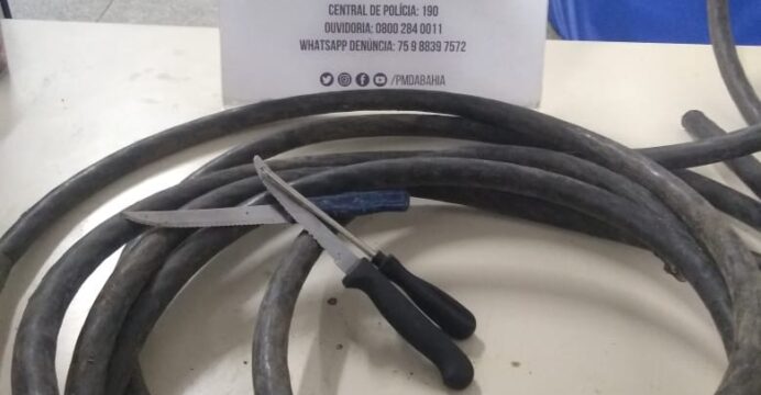 Hoje 29/04/2021 por volta das 00h50min, a Guarnição da PM estava em rondas nas imediações da DEAM, Rua Ipanema, Bairro Alves de Souza quando avistou um indivíduo com uma sacola plástica. O mesmo foi abordado e os policiais encontraram, aproximadamente, 10 metros de fio de cobre, duas facas do tipo serra, e uma chave de fenda.