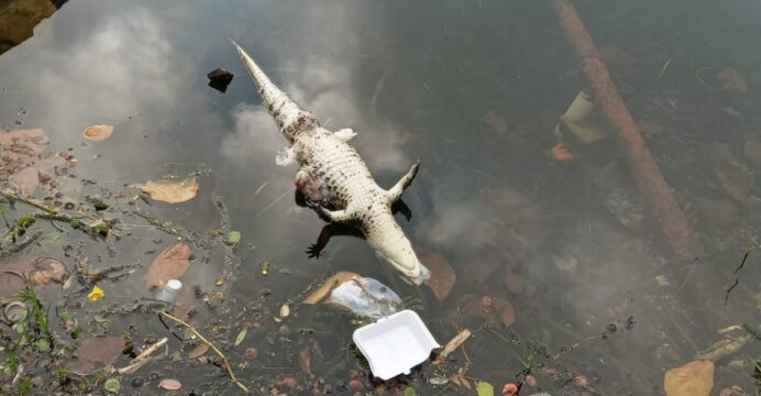 Em Paulo Afonso, jacaré é achado morto por arpão no Lago do Capuxu, marcando outro caso de crime ambiental.