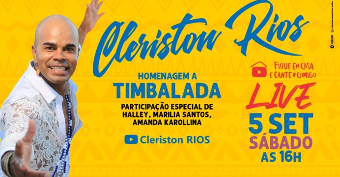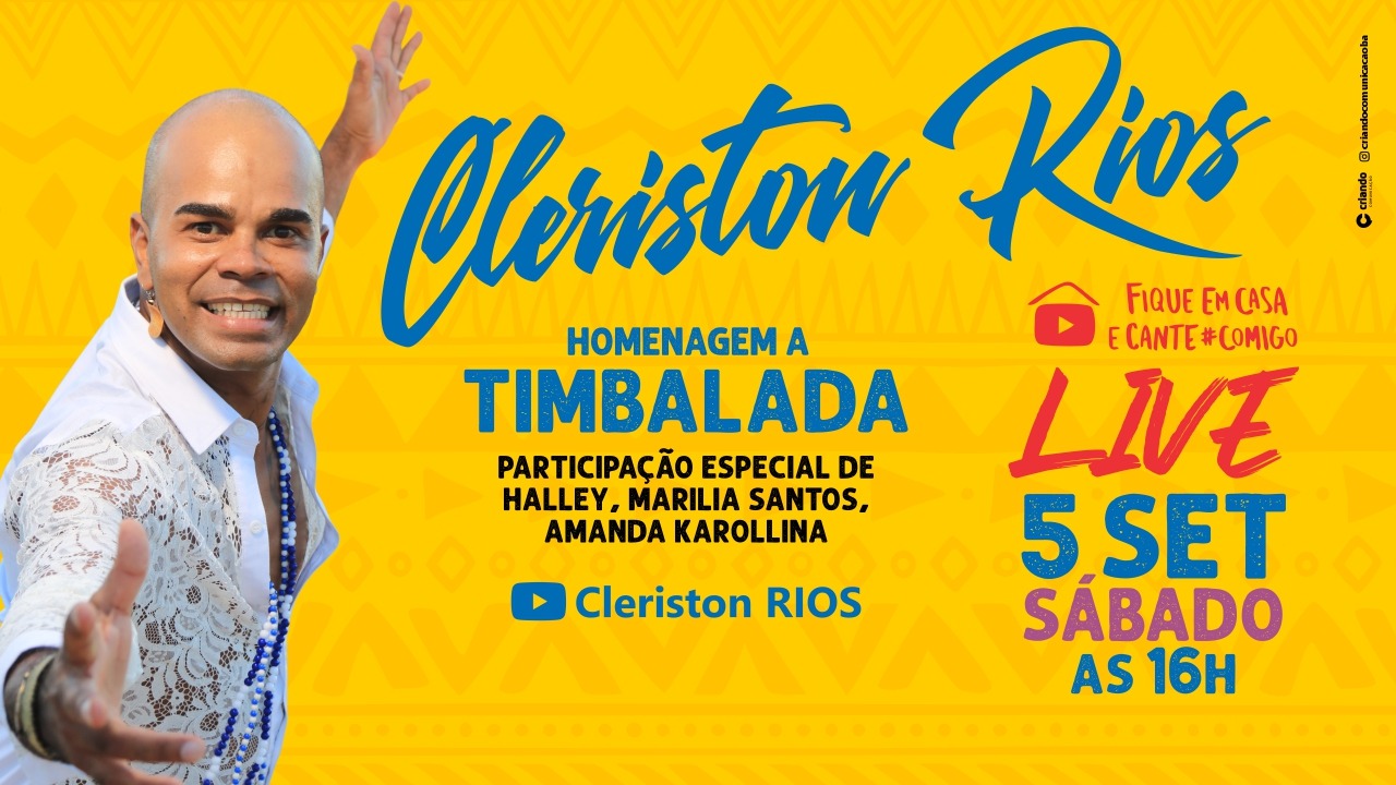 O músico, cantor, compositor e instrumentista Cleriston Rios vai realizar sua live no dia 05 de setembro de 2020 a partir das 16h. O tema é uma homenagem a Banda Baiana TIMBALADA e terá a participação de artistas Internacionais em participação especial.