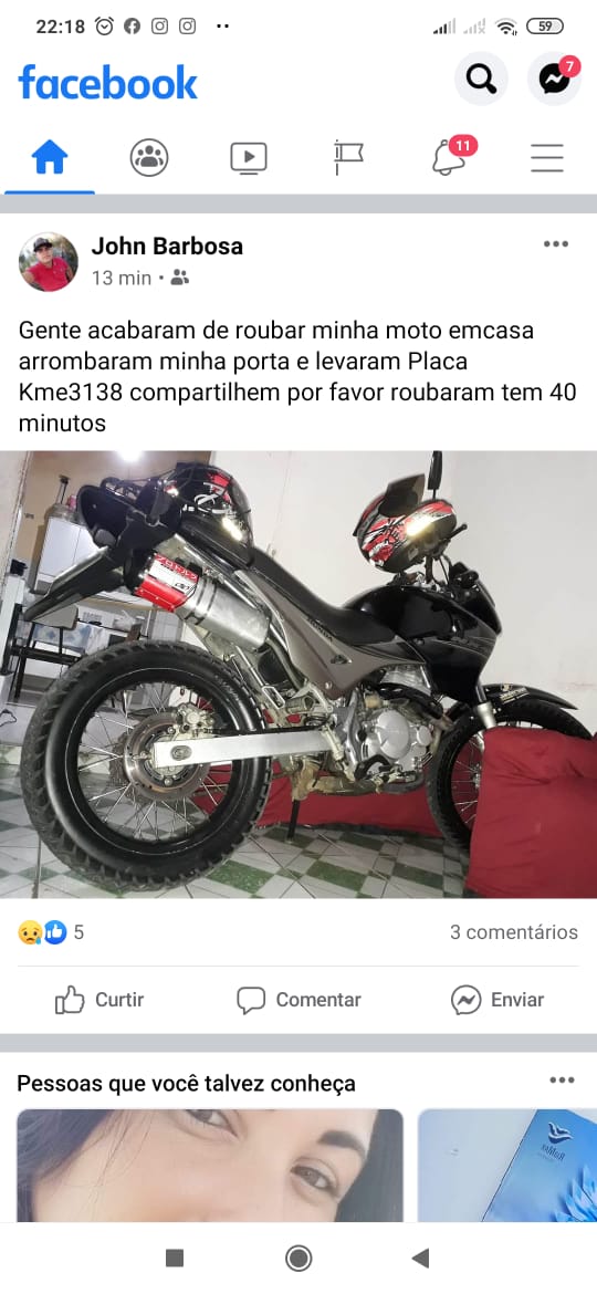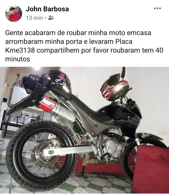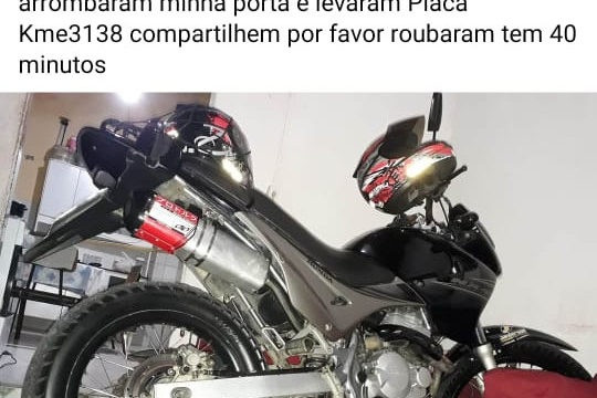 Ontem por volta das 22h indivíduos entraram numa residência no Bairro dos Rodoviários em Paulo Afonso Bahia, arrombaram a porta e levaram uma Motocicleta. Veja foto da Motocicleta placa KME 3138.