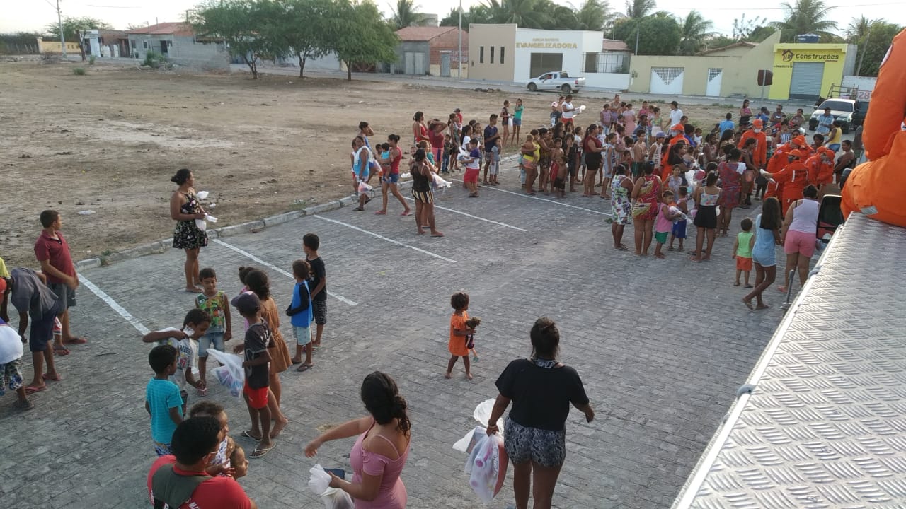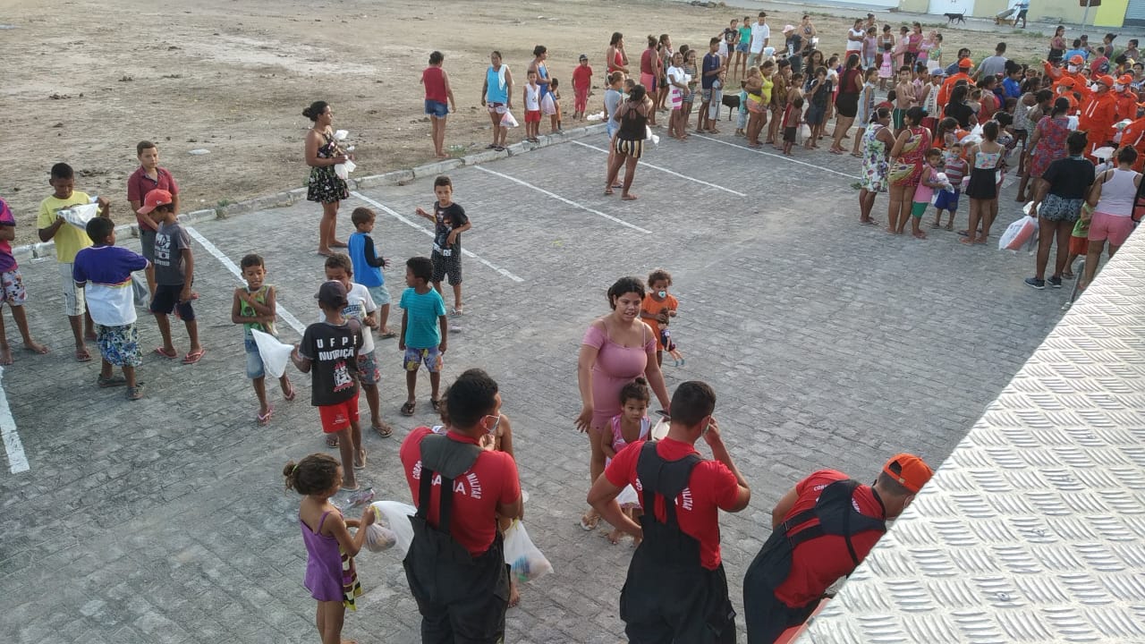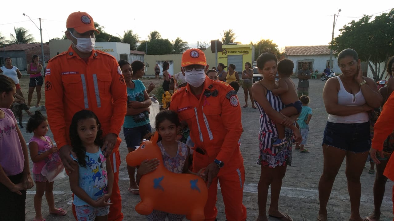 Na distribuição dos presentes estiveram presentes o Ten Cel BM Tarcisio, a Sub Ten BM Alice, o Sgt BM Alberto, o Sgt BM Andrade, o Cb BM Eládio, Sd BM Penaforte, Sd BM Jhoatas, Sd BM Ellen, Sd BM Rocha, Sd BM Aristoteles e Sd BM Helren. Fonte: 15° GBM/1° SGBM/Paulo Afonso-BA.