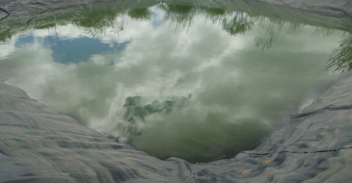 A base do aterro sanitário foi impermeabilizada para impedir que o chorume contamine o solo e as águas subterrâneas. O chorume é um líquido escuro, resultante da decomposição dos resíduos.