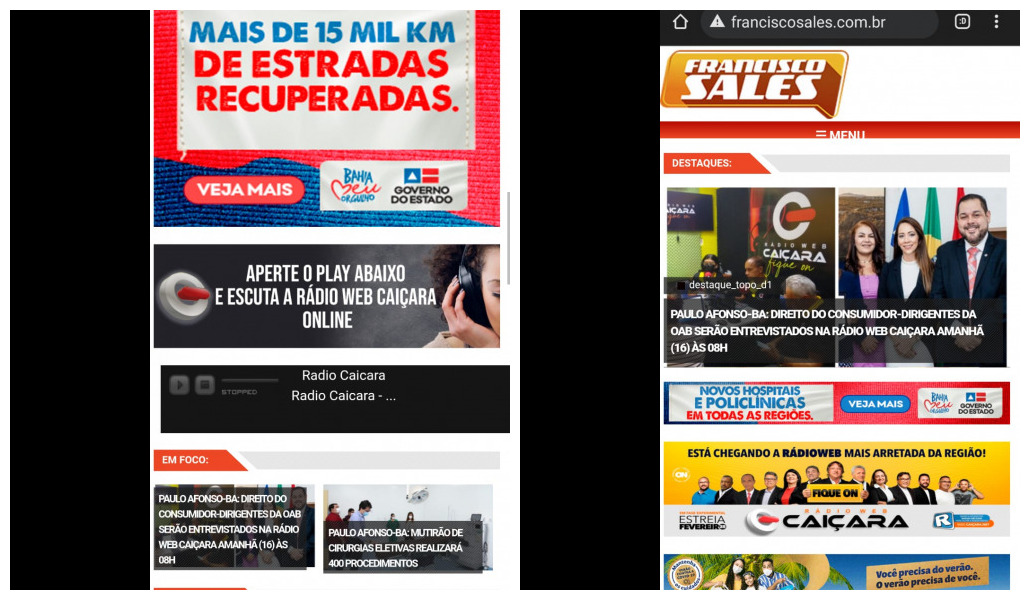 O internauta tem mais uma alternativa para ouvir a Programação da Rádio Web Caiçara através do site franciscosales.com.br. Alem de ficar bem informado com notícias escritas no site, você também pode ouvir notícias, músicas, dicas de português e dicas para o homem do campo, é só dar um CLICK no banner.