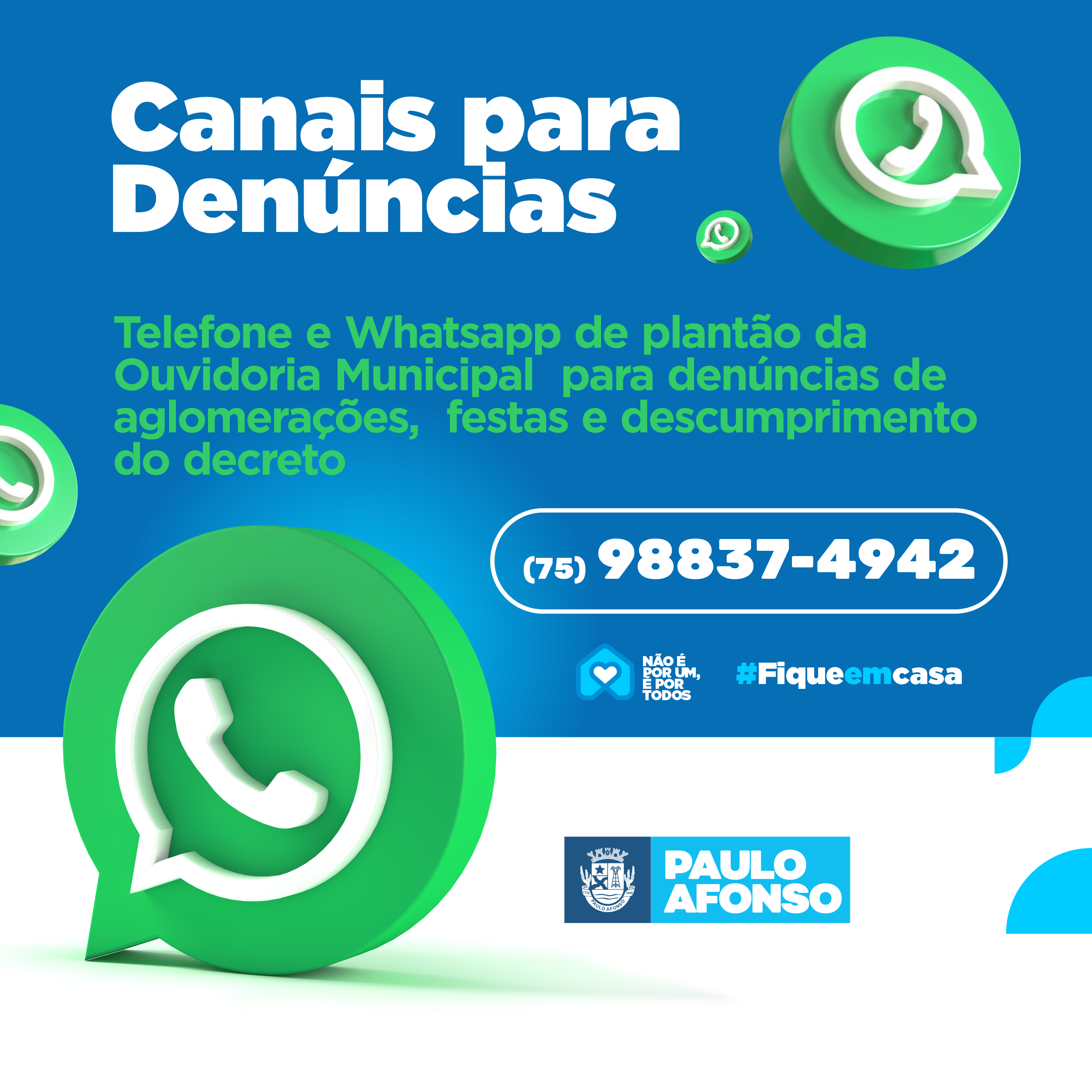 A Prefeitura de Paulo Afonso cria mais uma ferramenta para evitar o descumprimento do decreto municipal que toma medidas restritivas para o combate a covid-19. Por meio da Ouvidoria Municipal, foi disponibilizado telefone e whatsapp para que sejam realizadas denúncias de festas, aglomerações ou qualquer outra atividade que vá de encontro às restrições.