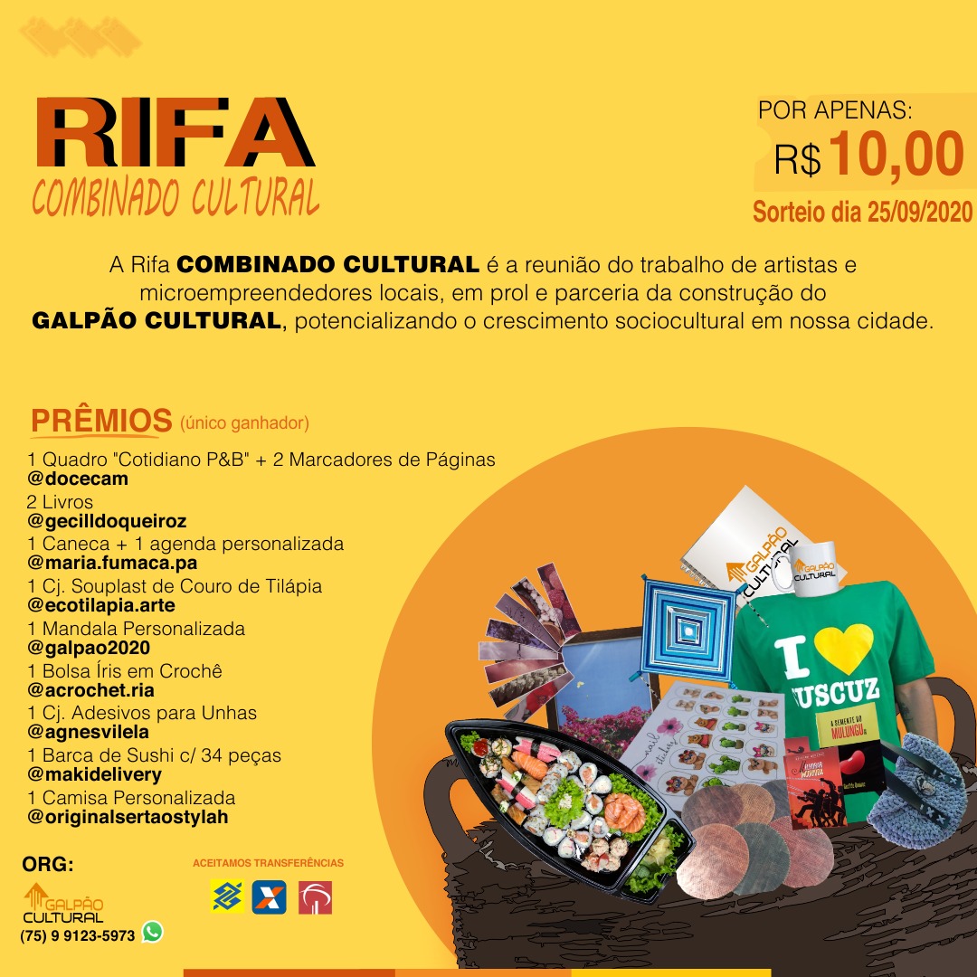RIFA COMBINADO CULTURAL-Você conhece o projeto do Galpão Cultural?!