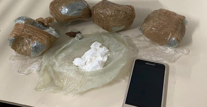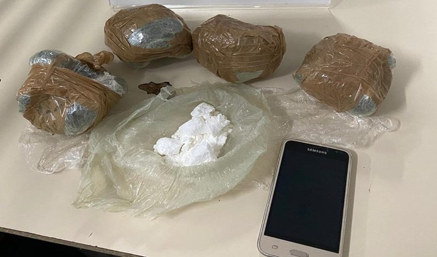 Chegando próximo à residência, um indivíduo que estava na porta da casa, ao avistar as guarnições, tentou empreender fuga, contudo, sem lograr êxito. Com o acusado foram encontrados quatro pacotes de substância análoga à maconha e um pacote de pó branco análogo à cocaína, perfazendo aproximadamente 400 (quatrocentos) gramas de maconha e 50 (cinquenta) gramas de cocaína, afirmando o mesmo que iria arremessar para dentro do presídio, prática que se faz constante.
