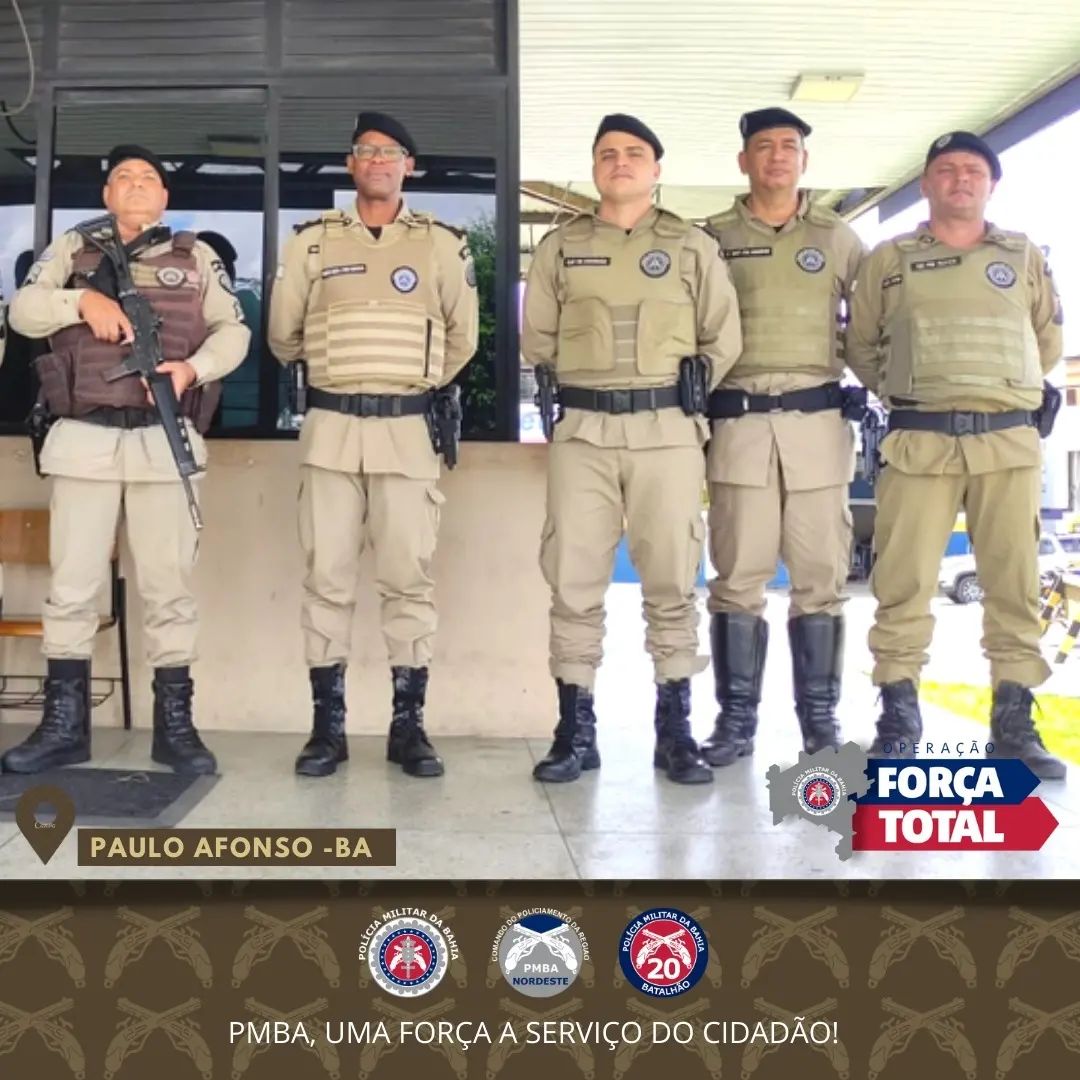 A Polícia Militar da Bahia (PMBA), deflagrou hoje 04 de julho de 2023 através do Comando de Policiamento da Região Nordeste (CPRNE), do 20 BPM-Batalhão de Polícia Militar em Paulo Afonso a “Operação Força Total”, para combater a criminalidade.