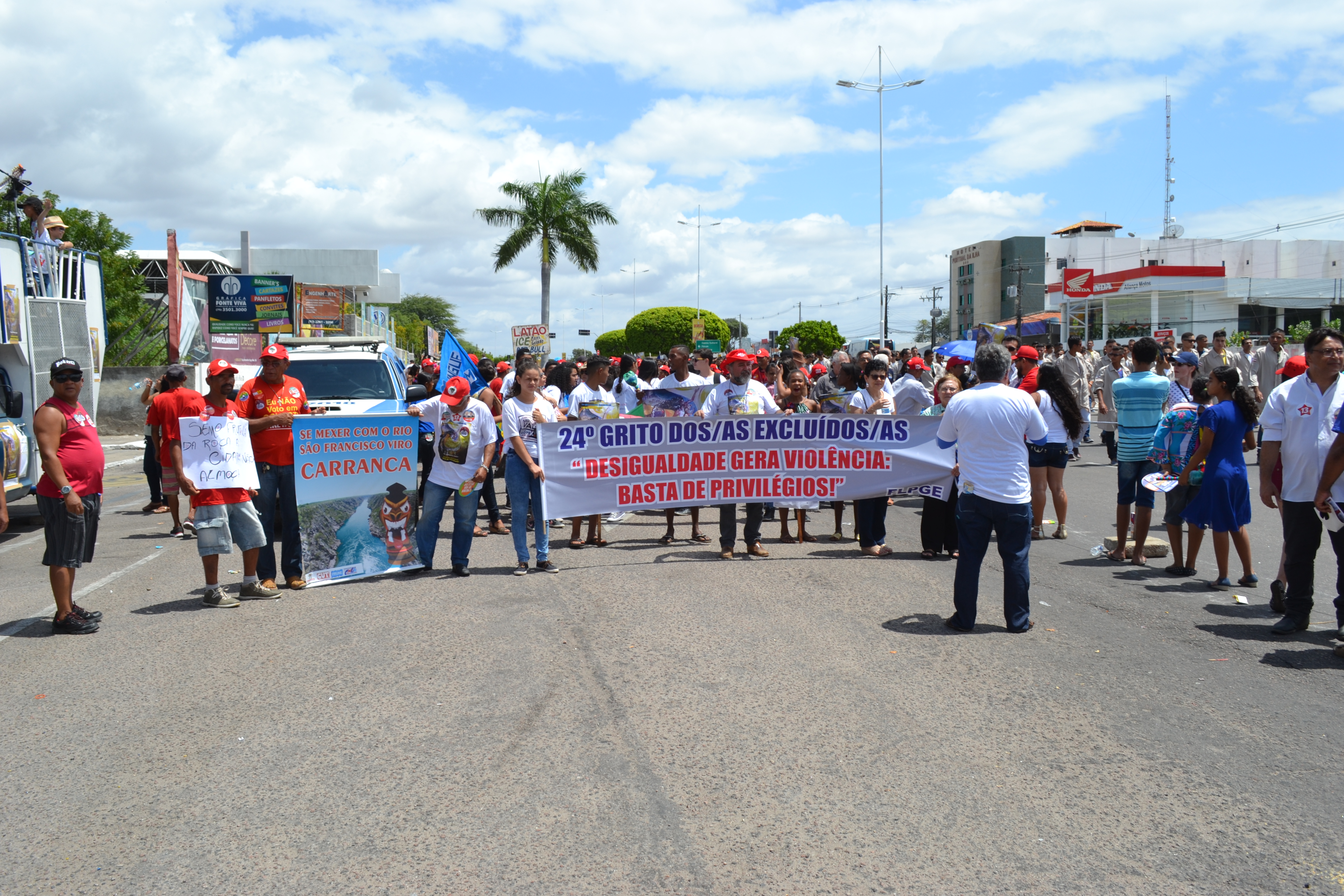 Em Paulo Afonso Bahia, como acontece todos os anos, o Grito dos Excluídos quase foi interrompido por uma viatura da Polícia Militar (que estacionou em frente ao carro de som volante) e três policiais, que tentaram impedir a entrada dos manifestantes após o desfile das escolas, como é costumeiramente acontecer.