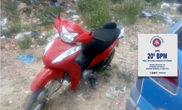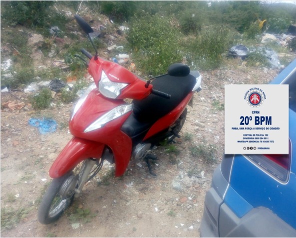 Hoje 22 de março de 2022 por volta das 11h50min, a guarnição da Polícia Militar do 20ºBPM-Batalhão de Polícia Militar foi acionada pelo CICOM para averiguar uma possível situação de moto abandonada próximo ao Condomínio Paloma (antigo Lixão).