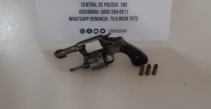MATERIAL APREENDIDO: 01 (um) revólver calibre .32 Marca e numeração não aparente, municiada com 03 (três) munições intactas do mesmo calibre.