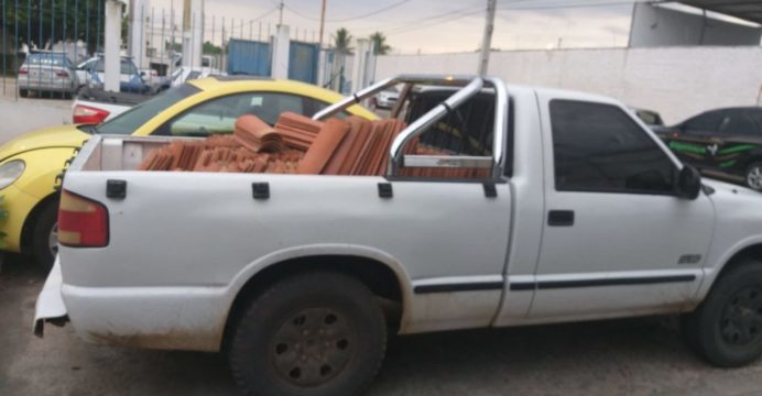 Aproximadamente 600 telhas de cerâmica, que foram retiradas do galpão.