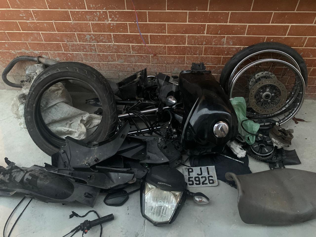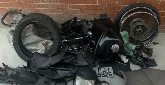 De posse dessas informações, a guarnição de serviço deslocou até o local e abordou o mesmo, o qual relatou que havia desmontado a motocicleta e mostrou aos policiais a localização das partes do veículo.