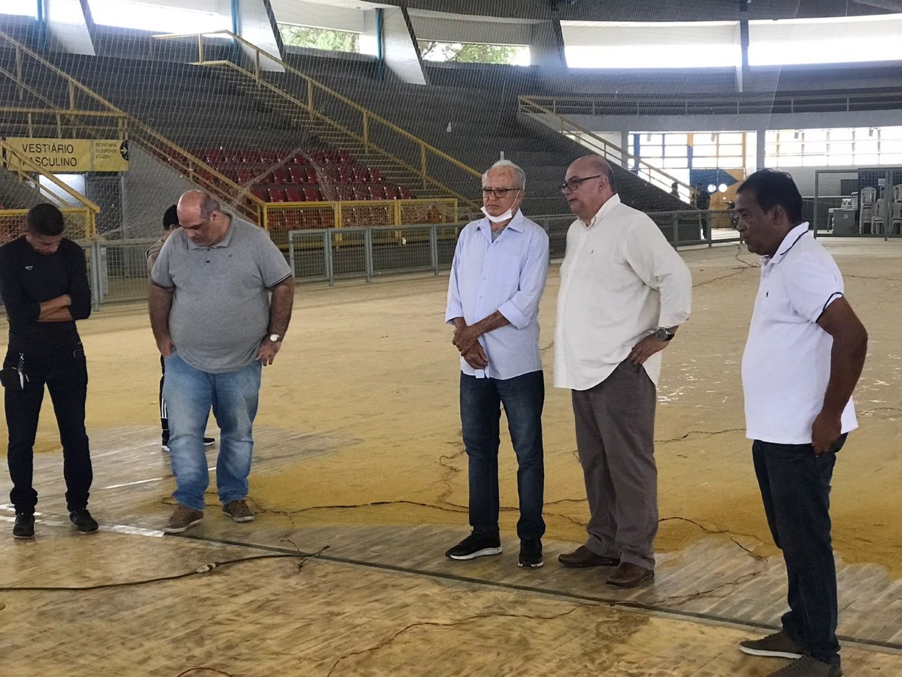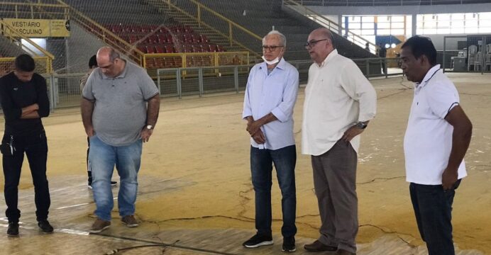 O prefeito Luiz de Deus esteve nesta quarta-feira (25), junto com o Secretário de Cultura e Esportes, Dernival Oliveira, realizando uma visita técnica ao Ginásio Esportivo Luís Eduardo Magalhaes. O local está passando por uma requalificação e nesta etapa o piso está sendo revitalizado. A obra contempla ainda outras melhorias para iniciar o calendário esportivo deste ano no local.