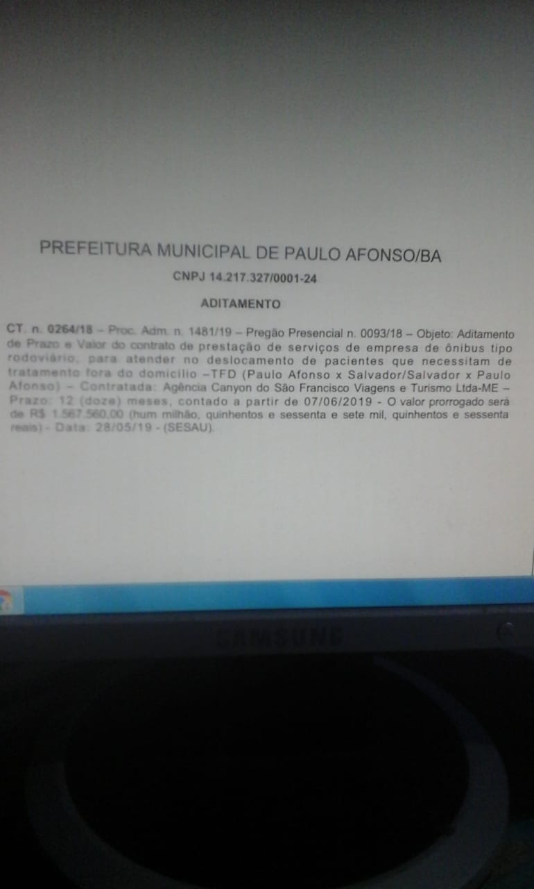 A Prefeitura de Paulo Afonso Bahia fez um aditamento para renovação dos transportes (Ônibus Paulo Afonso X Salvador, e Salvador X Paulo Afonso) do TFD-Tratamento Fora de Domicílio, que conduz os pacientes para realizar tratamento em Salvador na capital baiana.