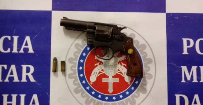 Revólver Taurus calibre .32 – NUMERAÇÃO 306304 , com 02 cartuchos, porém 01 intacto, e outro deflagrado. Diante dos fatos foi conduzido Fabiano Martiniano da Silva 20/07/86, para Delegacia e tomada as providências necessárias.