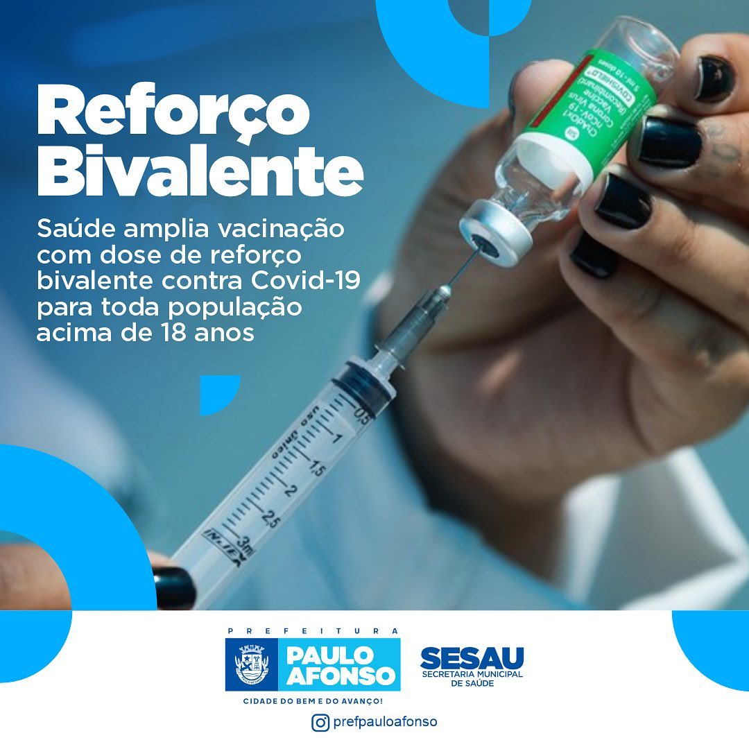 Nesta segunda-feira (24), o Ministério da Saúde ampliou o público da vacina bivalente contra a Covid-19 para pessoas a partir de 18 anos. Seguindo o que determina o órgão, a Secretaria de Saúde de Paulo Afonso disponibiliza a imunização para este público nos postos de saúde a partir desta terça-feira (25).