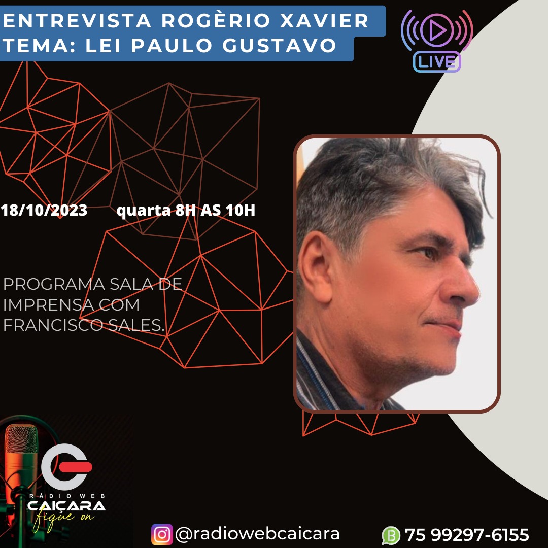 Paulo Afonso-BA: Rogério Xavier vai falar da Lei Paulo Gustavo. Fique ON amanhã 18 a partir das 08h