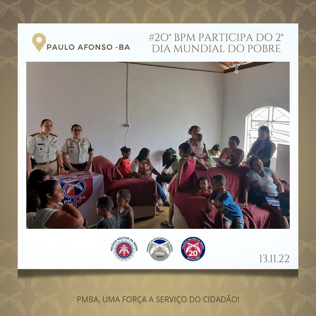 A Polícia Militar da Bahia (PMBA), através do 20º Batalhão de Polícia Militar (BPM/ Paulo Afonso-BA, Unidade Operacional comandada pelo Ten Cel PM Gabriel Neto, subordinada ao Comando de Policiamento da Região Norte (CPR-N), comandado pelo Coronel PM Valter Araújo participou, neste domingo (13), em Paulo Afonso, junto à Ronda Maria da Penha, do 2º Dia Mundial do Pobre.