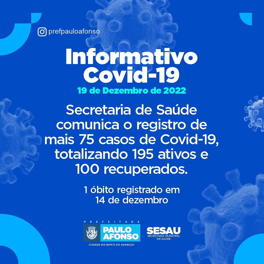 Foi registrado ainda 1 óbito de paciente de Paulo Afonso, no dia 14/12, que estava internado em Juazeiro, vindo a falecer naquela cidade.