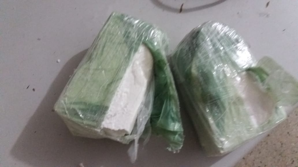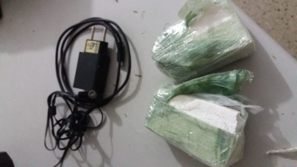 *01 carregador de celular *410 gramas de substância aparentando ser cocaína.