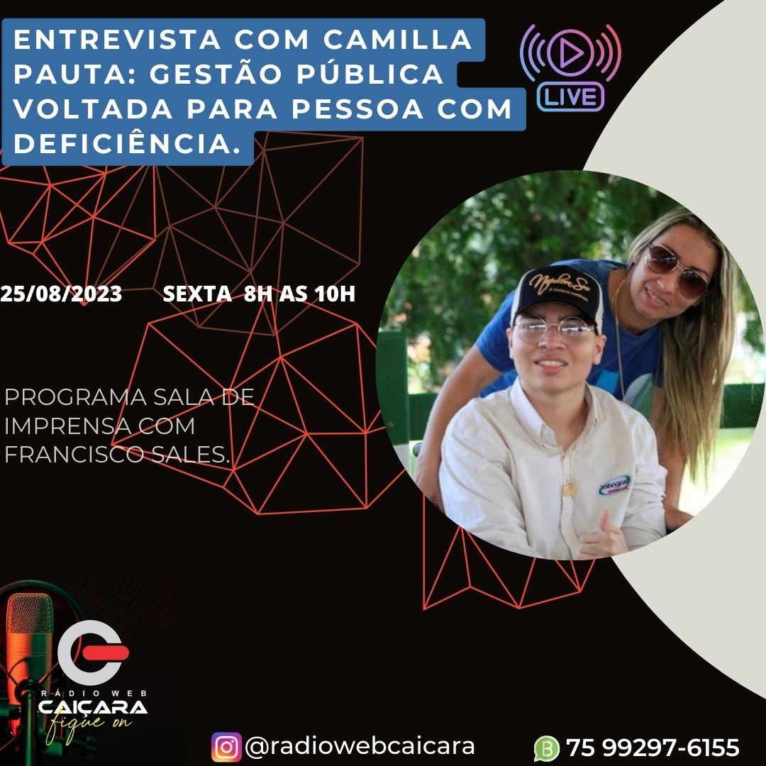 O Programa Sala de Imprensa da @radiowebcaicara de sexta-feira 24 de agosto de 2023, a entrevistada será Camila da ATÍPICA, a pauta será: Gestão Pública voltada para a pessoa com deficiência. O Programa Sala de Imprensa vai ao ar de segunda à sexta-feira das 08h às 10h.