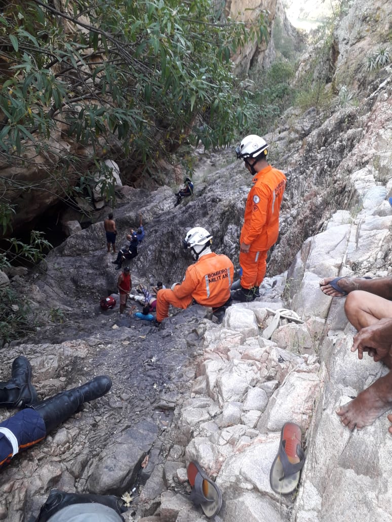 A guarnição do 15° GBM/1° SGBM/Paulo Afonso Bahia deslocou ao povoado onde foi informado que duas mulheres estavam machucadas próximo ao Cânion, chegando ao no local já estava uma equipe do SAMU, e uma vítima com possível fratura na perna esquerda, foi iniciado os procedimentos para resgatar a Sra. Maria Priscila R. Moraes, resgate foi concluído e com êxito e a vítima entregue ao SAMU.