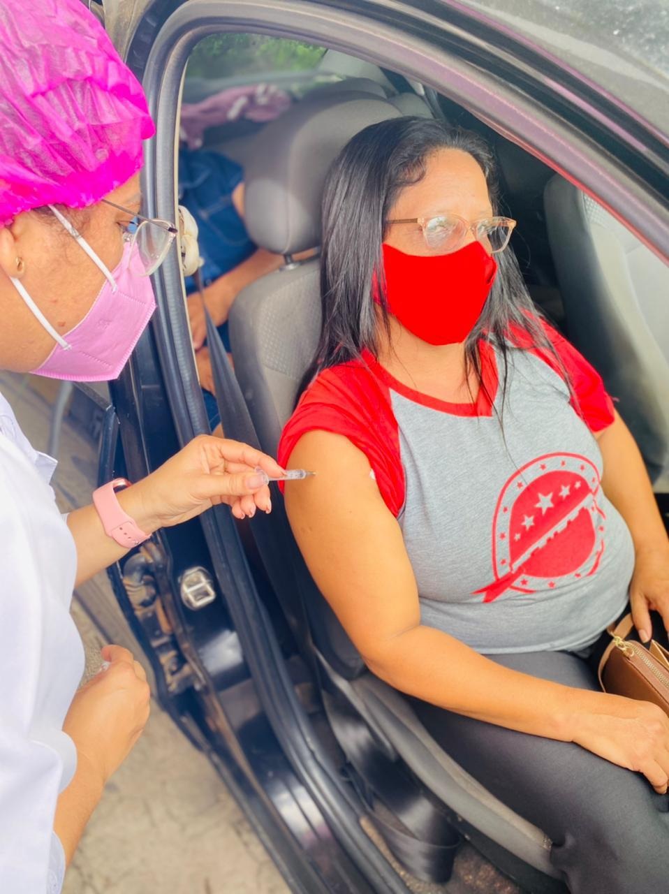 Mais um passo no combate a covid-19 foi dado nesta segunda-feira (7), com a vacinação da 1ª dose para os trabalhadores da educação da rede pública e privada com idade a partir dos 40 anos. A imunização iniciou às 7h30 nas modalidades drive trhu e pedestre com aplicação de 620 doses.