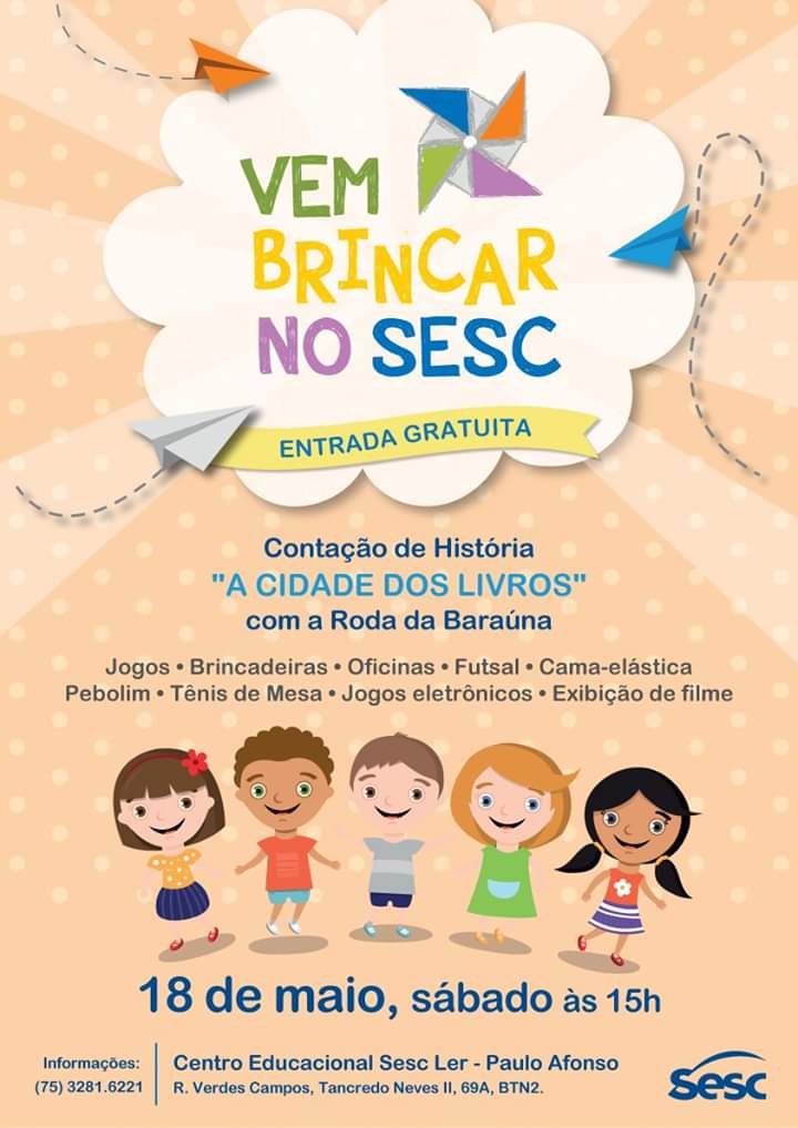 18 de maio (sábado), às 15h, no Sesc Paulo Afonso – BTN 2. ENTRADA FRANCA!