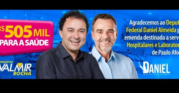 O deputado federal Daniel Almeida (PCdoB-BA), destinou por meio de emenda ao orçamento da união o valor de R$505.178,00 para custeio de assistência hospitalar e ambulatorial para Paulo Afonso. A conquista foi comunicada pelo vereador Valmir Rocha (PCdoB), aliado de Almeida na cidade, na abertura dos trabalhos legislativos da Câmara Municipal.