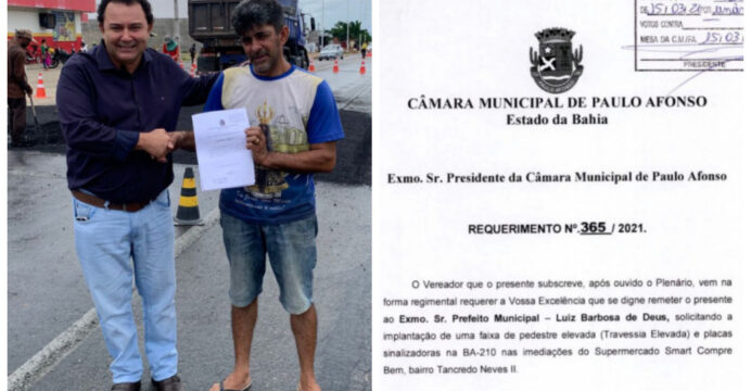 Paulo Afonso-BA: Vereador Valmir Rocha tem requerimento atendido de Travessia Elevada para BA-210