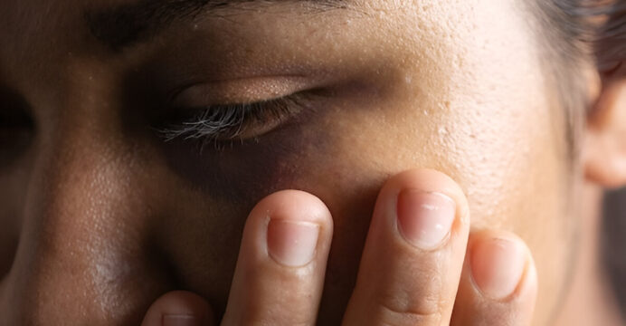 No local, os policiais encontraram a vítima dentro de sua residência, exibindo sinais de agressão. Ela estava com um inchaço no olho esquerdo e apresentava escoriações nos braços e nas pernas. A mulher relatou que as agressões foram cometidas por seu companheiro, que a atacou com socos e chutes.