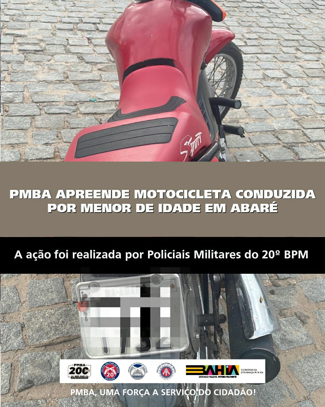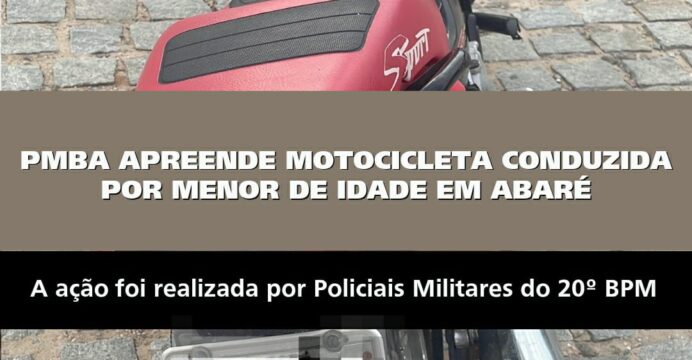 Na quarta-feira, 5 de fevereiro, por volta das 17h50, Policiais Militares do 20º Batalhão de Polícia Militar realizavam patrulhamento pela Avenida Edésio Tolentino, no município de Abaré, quando avistaram uma motocicleta conduzida por um indivíduo que aparentava ser menor de idade.