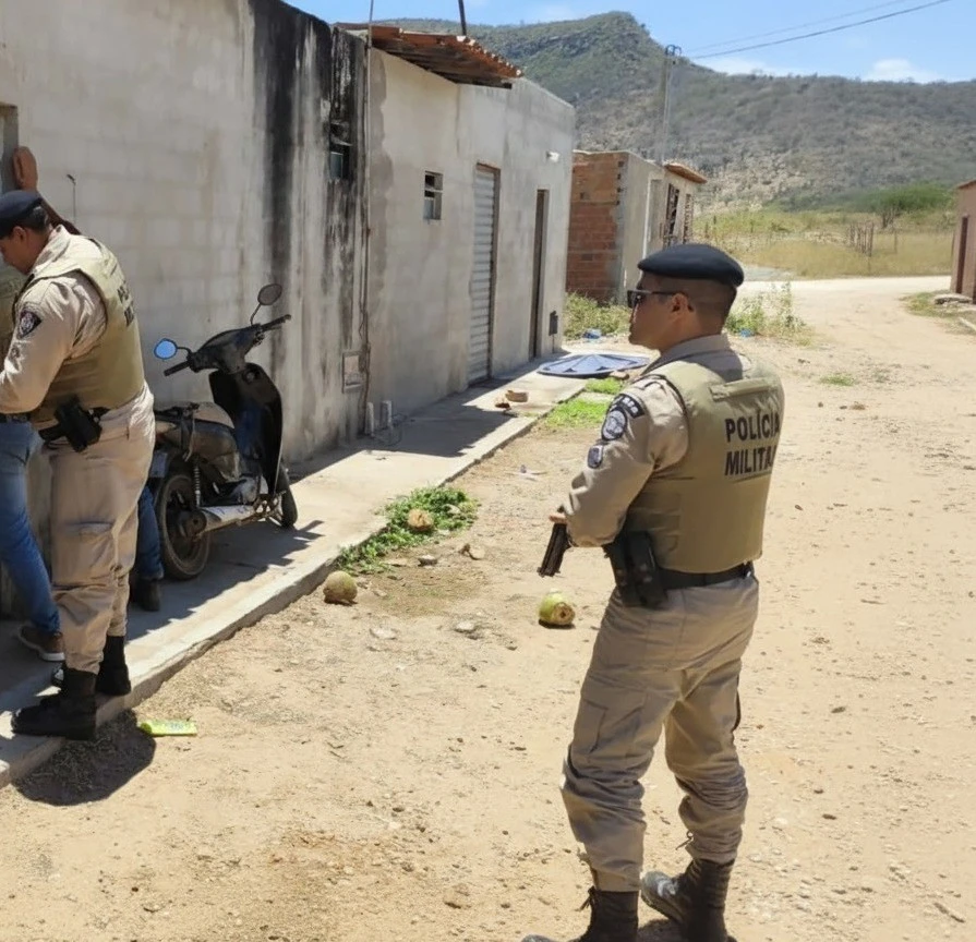 Durante as diligências no local do crime, marcadas pela técnica policial e preservação de vestígios, a equipe localizou e apreendeu uma espingarda de fabricação artesanal (tipo anticarga) e uma faca. O suposto autor não foi encontrado no momento, mas foi identificado através de documentos deixados na residência.