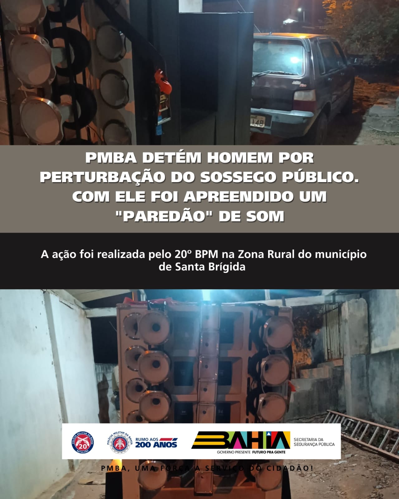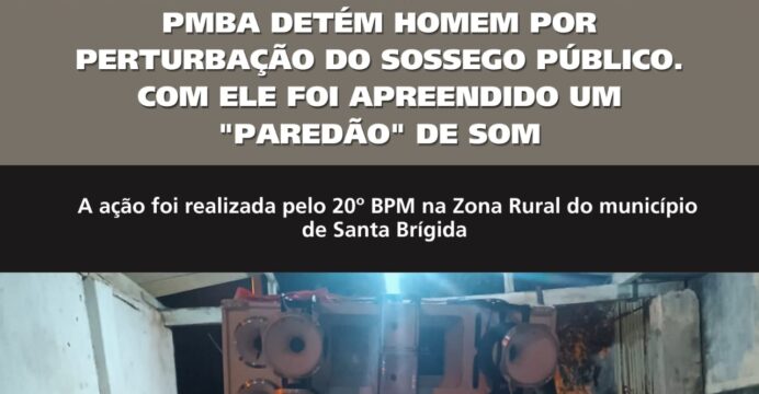 Na sexta-feira, 6 de dezembro, por volta das 22h, policiais militares do 20º Batalhão de Polícia Militar foram acionados pelo Centro Integrado de Comunicação (CICOM) para verificar uma ocorrência de perturbação do sossego público na zona rural do município de Santa Brígida.