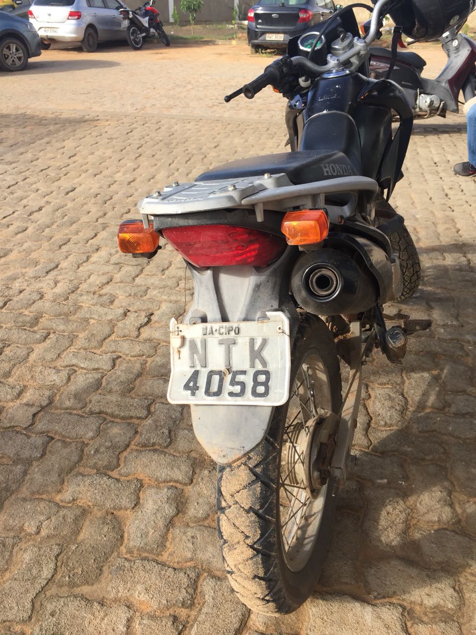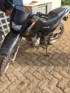 01 motocicleta Honda Bros 150cc, Placa Policial NTK4058 com restrição de roubo.