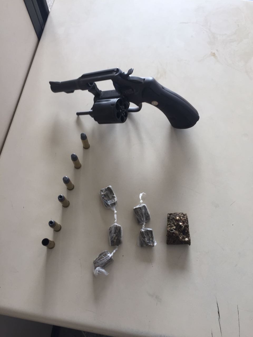 01 revólver calibre 38 com numeração suprimida com 5 munições intactas e 01 deflagrada