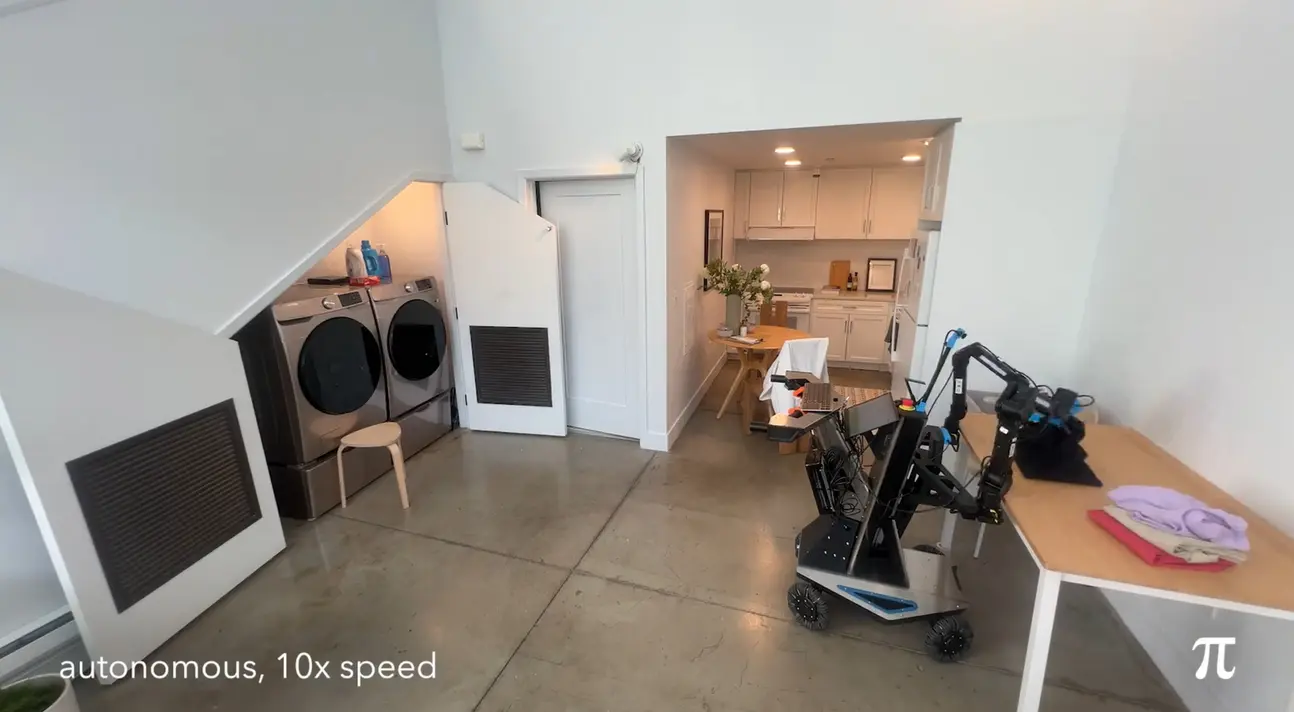Um robô da Physical Intelligence se destaca ao dobrar roupas e realizar tarefas cotidianas, utilizando um sistema de IA inovador.