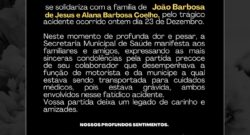 A Secretaria Municipal de Saúde, se solidariza com a família de João Barbosa de Jesus e Alana Barbosa Coelho, pelo trágico acidente ocorrido ontem dia 23 de Dezembro. Neste momento de profunda dor e pesar, a...