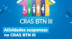 A Secretaria de Desenvolvimento Social (Sedes) informa que devido a servidores terem positivado para a covid-19, o Centro de Referência de Assistência Social (CRAS) BTN III, terá seus serviços suspensos de 16 a 19 de fevereiro,...