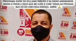 Paulo Afonso-BA: Radialista Giuliano Ribeiro informa que testou positivo para Covid-19