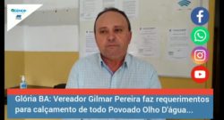 Glória BA: Vereador Gilmar Pereira faz requerimentos para calçamento de todo Povoado Olho D’água