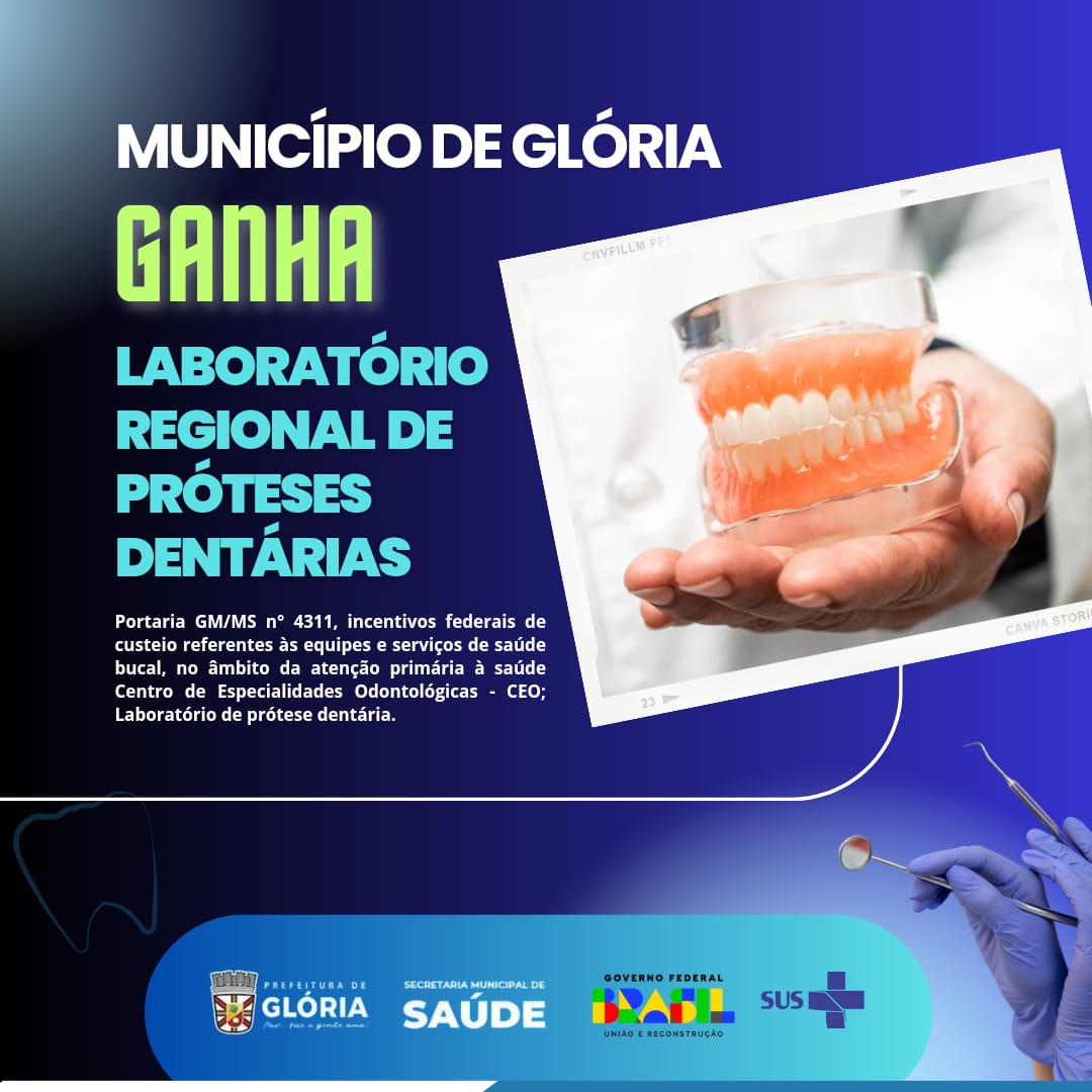 A Prefeitura de Glória, por meio da Secretaria Municipal de Saúde, foi contemplada com um Laboratório Regional de Prótese Dentária (LRPD), destinado a oferecer próteses dentárias gratuitas para pessoas de baixa renda usuárias do Sistema Único de Saúde (SUS) no município.